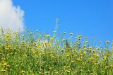| コメント | 遠目で観るとニッコウキスゲ?ブタナです。タンポポに似ていることから別名をタンポポモドキ、青空に輝いています。 |