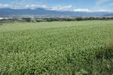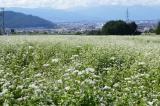| コメント | 山麓線の沿線は秋ソバ畑がアチコチに有ります。松本平を見下ろす高台に白いジュータンが広がっています。生憎雲が邪魔をして北アルプスは全容を見せません。 |