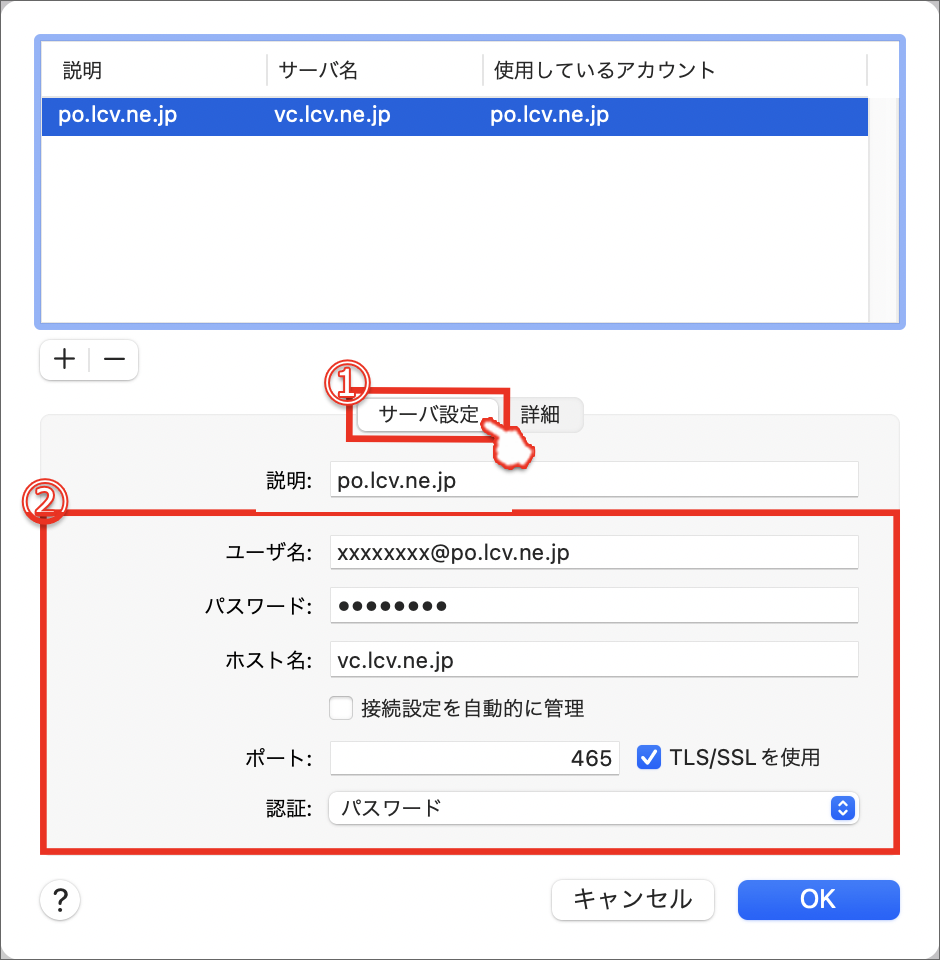 | 受信用メールサーバー | imap.lcv.ne.jp |