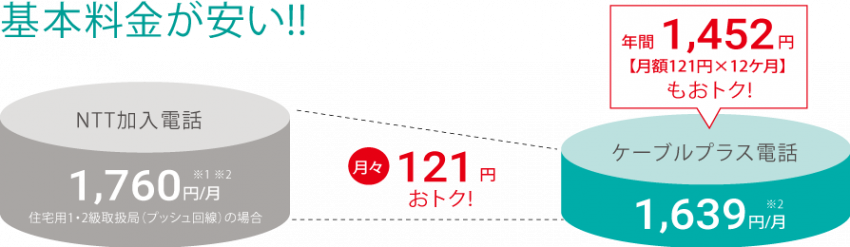 家庭用電話の『基本料金』が今までより安くなる固定電話サービスです。